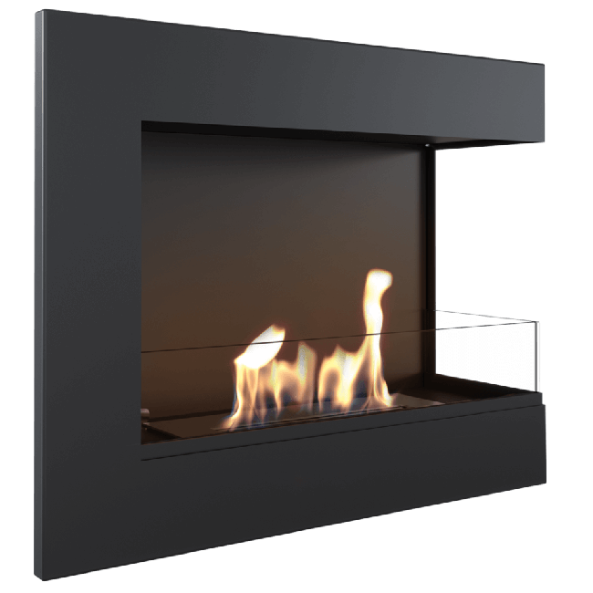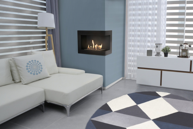 Desnostranski kotni etanol kamin Delta z zasteklitvijo je sodobna brezzračna naprava na ekološko gorivo. Popoln je za odprte prostore, kjer boste, če ga obesite na vogal, lahko uživali v viziji ognja z dveh strani; idealno za povezovanje prostorov. Kotni kamin na etanol Delta je na voljo v različnih dolžinah in izvedbah s steklom ali brez, da ustreza tako majhnim kot velikim notranjim prostorom.