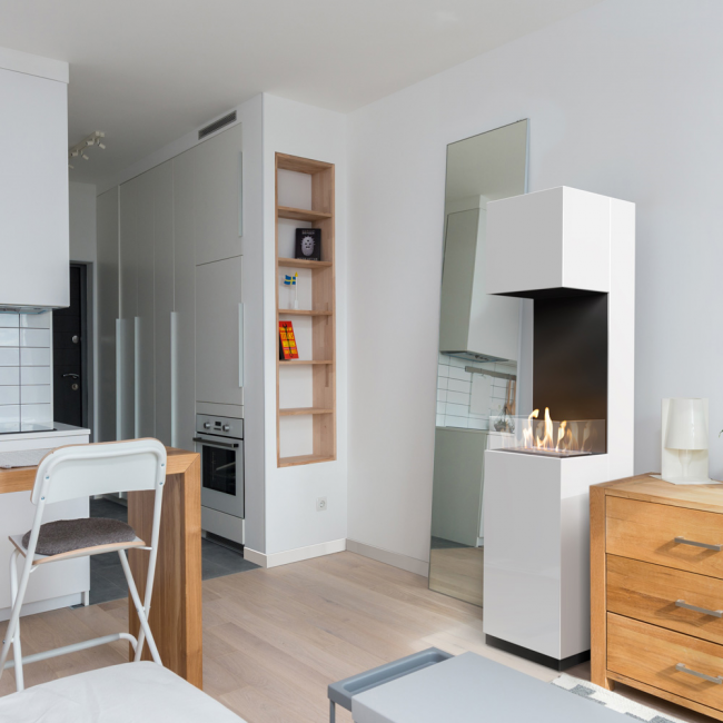 Prostostoječi kamin na bioetanol SIERRA TÜV, bel, zastekljen