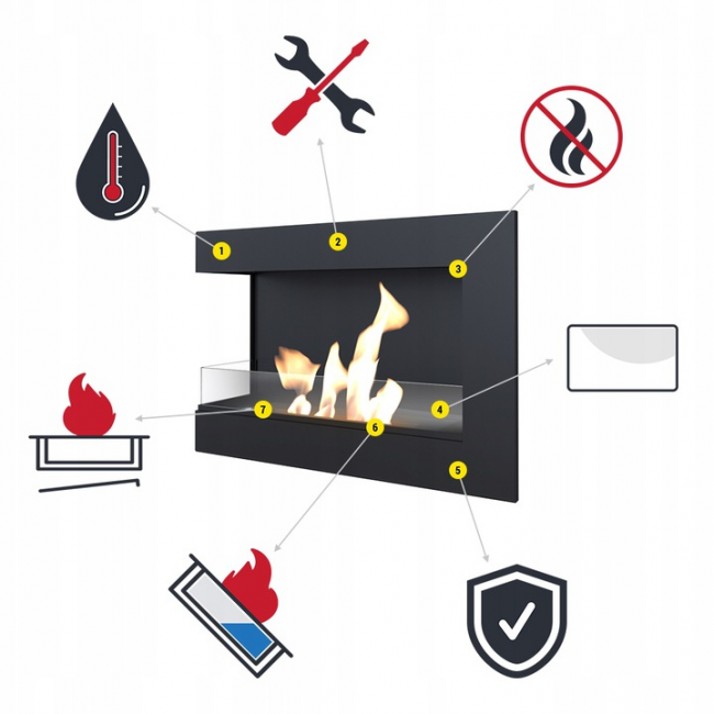 Stenski kamin na bioetanol DELTA 900 TÜV, desni, zastekljen